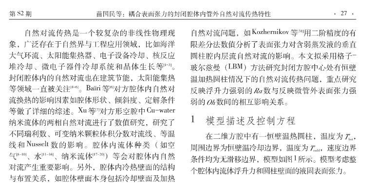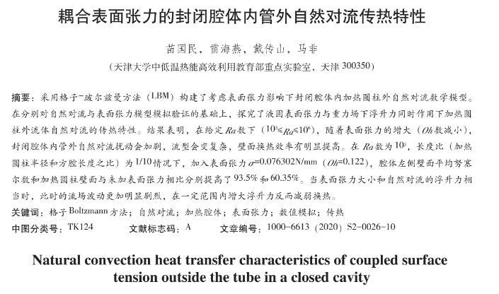 耦合表面张力的封闭腔体内管外自然对流传热特性