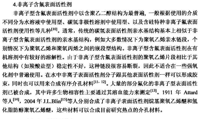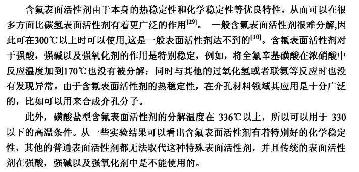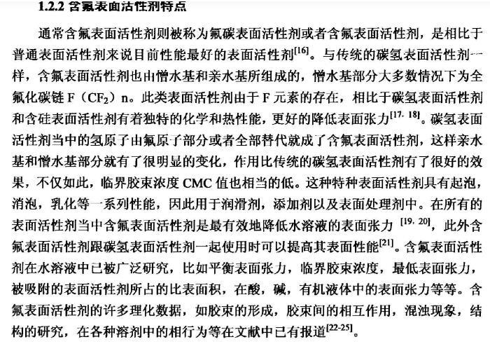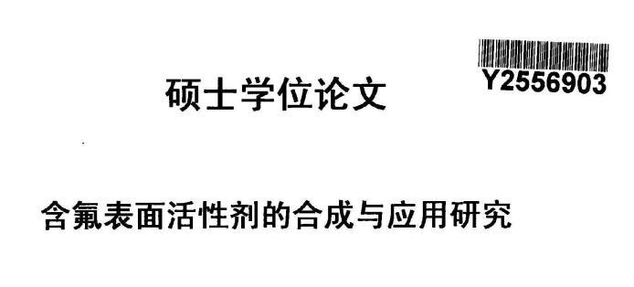 【摘要】:本论文首先对新型含氟表面活性剂的特性,应用领域,国内外研究进展进行了全面的综述。含氟表面活性剂是目前最受青睐的特种表面活性剂,相比于传统的碳氢表面活性剂,含氟表面活性剂的用量少,降低水溶液表面张力的作用强,同时可以跟其它表面活性剂起到很好的复配效果,可以应用于消防、铬雾抑制剂、造纸、冶金、起泡与消泡剂的合成等很多领域。