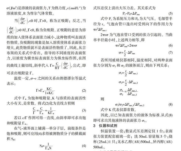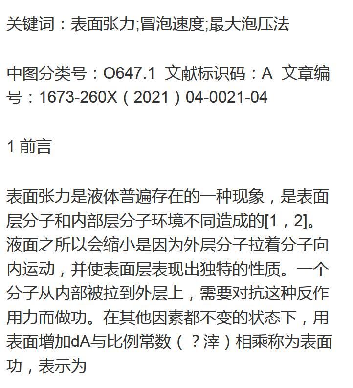 表面张力测定实验的改进——冒泡速度对其影响的初探