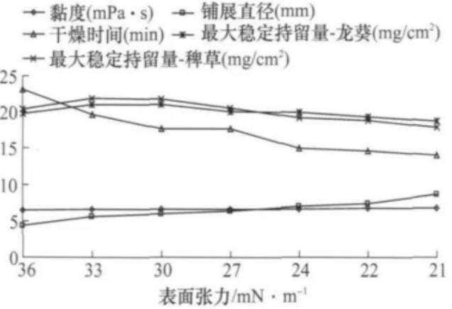 草甘膦药液表面张力变化对其物理性状与生物活性的影响