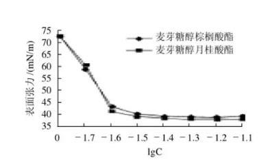 麦芽糖醇脂肪酸酯质量分数对其水溶液表面张力的影响