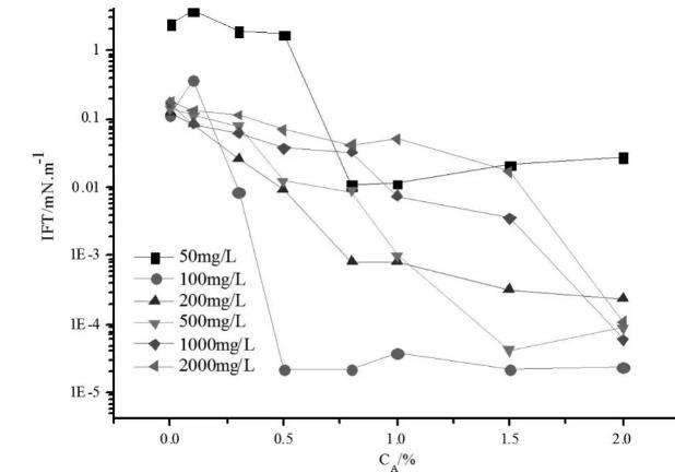 本文将不同碳链的脂肪族烷醇酰胺进行复配,筛选出界面效果较好的与石油磺酸盐等进行复配,并对其界面性能进行评价,筛选出能达到超低界面张力的体系。旨在提高原油采收率,增加油气田的原油产量。