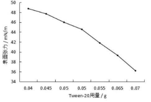 图2不同Tween-20用量下合成血液的表面张力变化