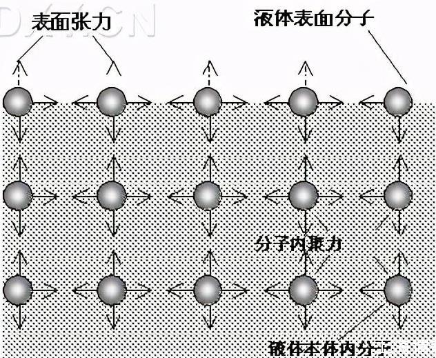 (3)压力。理论上,就液体物质而言,压力增大使分子间距离变小,相互作用力增大,物质表面分子受到相邻的内部分子的指向体相内部的拉力自然增大,导致其表面张力增大。但是这种影响在压力足够大时才明显;